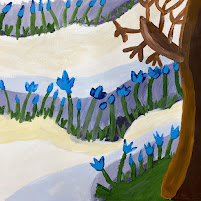 3. белилами с добавлением желтого и синего выполняем снег на освещенных и теневых местах.